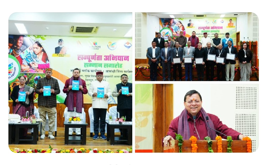 मुख्यमंत्री पुष्कर सिंह धामी ने मुख्य सेवक सदन, देहरादून में सम्पूर्णता अभियान सम्मान समारोह कार्यक्रम में प्रतिभाग किया। इस अवसर पर मुख्यमंत्री ने नीति आयोग, भारत सरकार द्वारा प्रदत्त प्रशस्ति पत्र एवं पदकों से आकांक्षी जनपद कार्यक्रम एवं आकांक्षी ब्लॉक कार्यक्रम में सर्वश्रेष्ठ प्रदर्शन करने वाले जिलों एवं विकासखंडों को सम्मानित किया। इस अवसर पर मुख्यमंत्री ने Uttarakhand at 25: A Himalayan State With Infinite Possibilities पुस्तक का विमोचन भी किया।