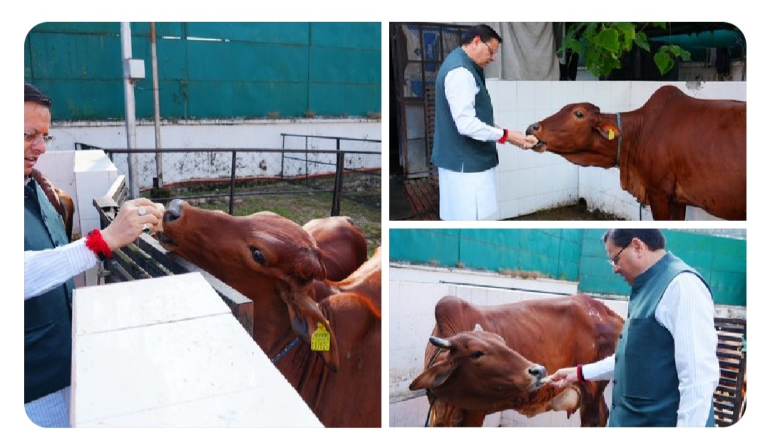 मुख्यमंत्री पुष्कर सिंह धामी ने गोवर्धन पूजा के अवसर पर गौमाता की पूजा-अर्चना कर प्रदेश की खुशहाली, समृद्धि और जन कल्याण की कामना की।